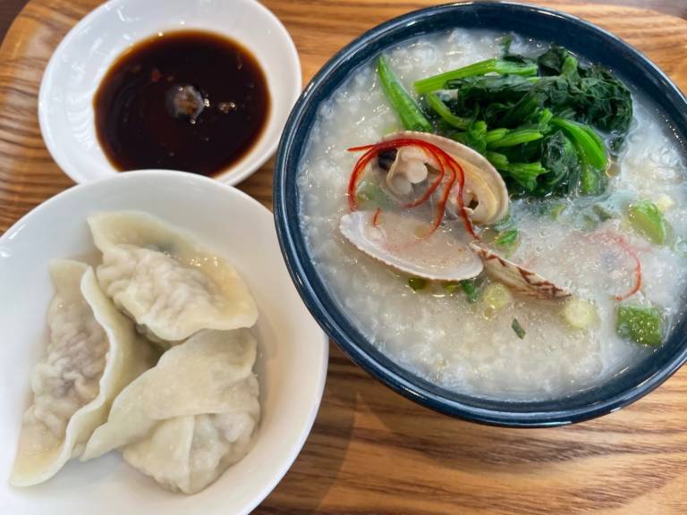 で、もう一つの目玉は、出汁おかゆ〜♡♡♡特製出汁がすごく優しく美味しい。程よくサラッとしたお粥。めちゃくちゃ美味しい♡トッピングが選べて嬉しい。アサリと出汁が最高の合わせ技〜うま。